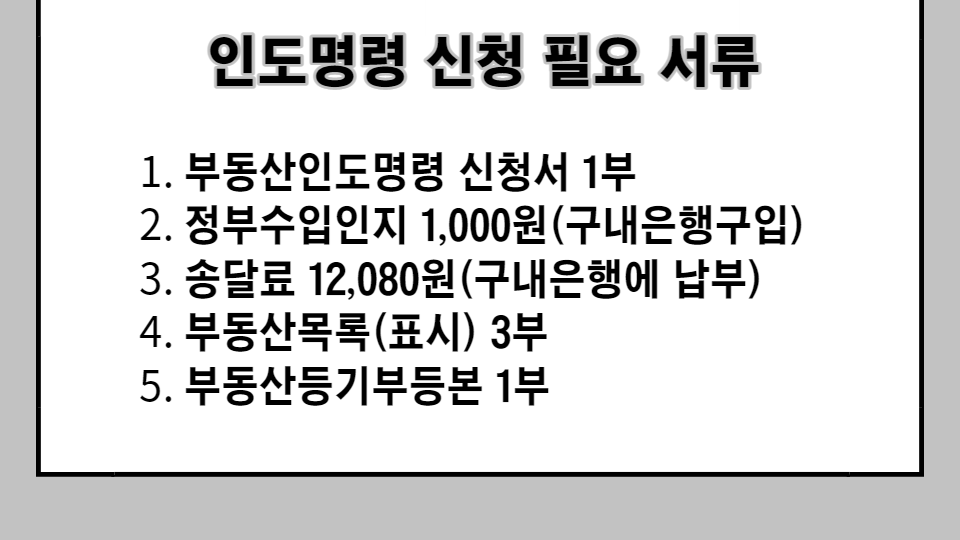 인도명령신청을 하기 위해서는 아래의 필요서류 및 금액이 필요하다.