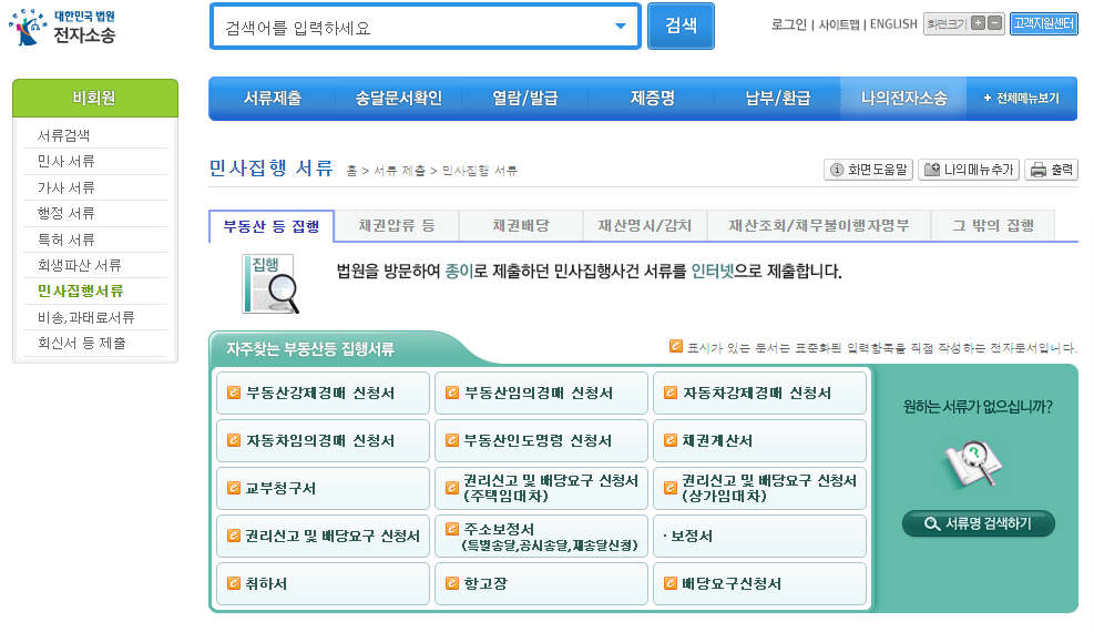 홈페이지 상단 서류 제출 -> 민사 집행 서류 -> 임의경매신청 이동(로그인필수)
